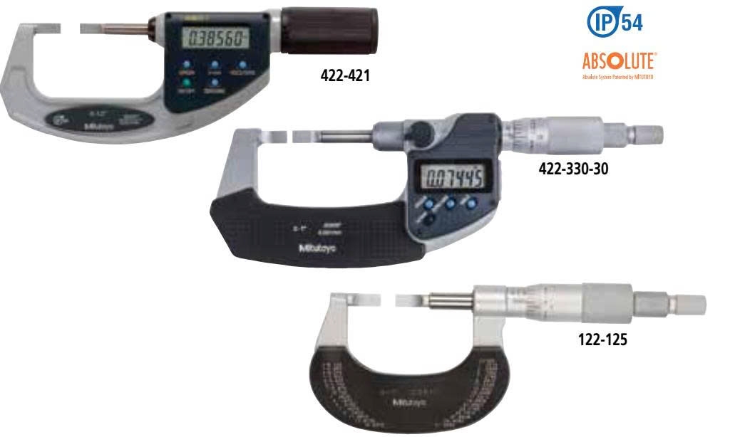 | 1 – 2” | 0.0005” / 0.001mm | 422-331-30 | A | ±0.00015” |