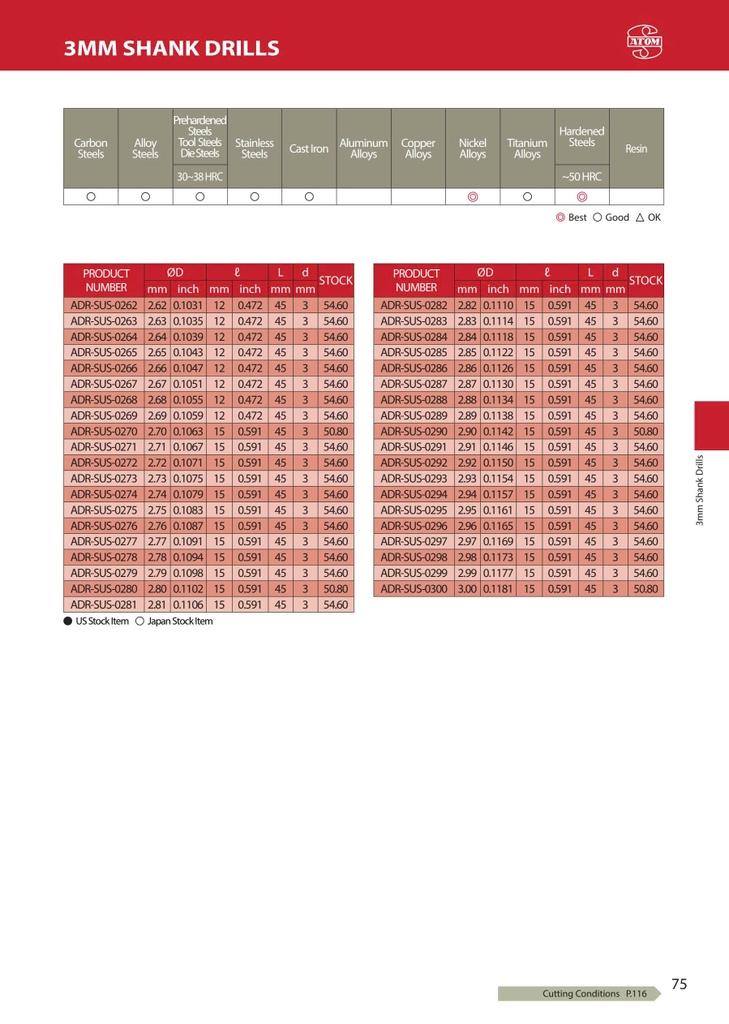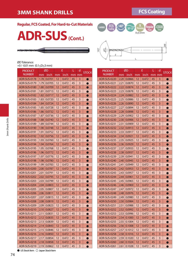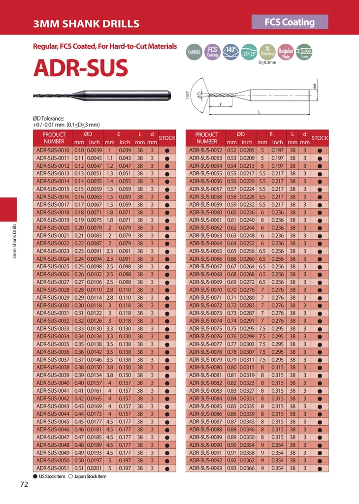 👉 Dòng ADR-SUS có đầy đủ size bước 0.01mm → dễ dàng lựa chọn chính xác