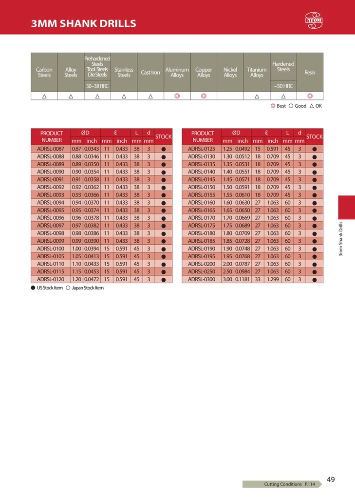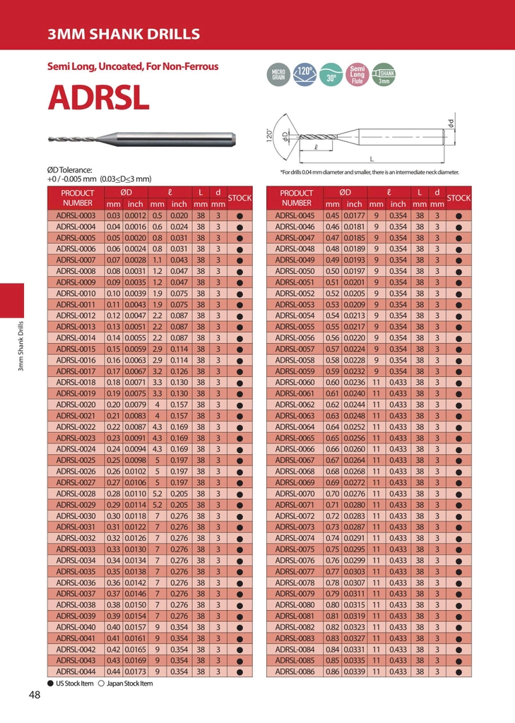 ADRSL – ATOM Nhật Bản là dòng mũi khoan hợp kim (solid carbide) thiết kế long flute (rãnh dài), chuyên dùng cho khoan lỗ sâu, lỗ nhỏ nhưng yêu cầu thoát phoi tốt.
