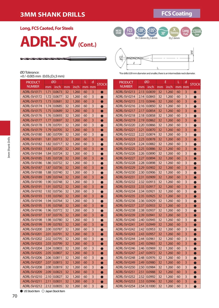 👉 Dòng ADRL-SV cung cấp full size bước 0.01mm từ Ø0.03 → Ø3.00