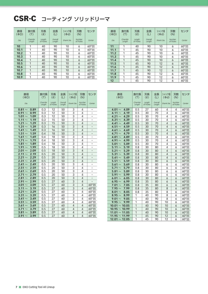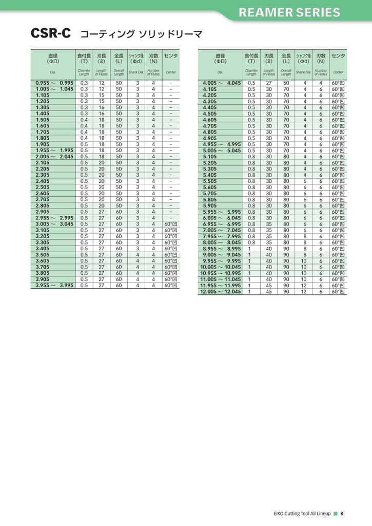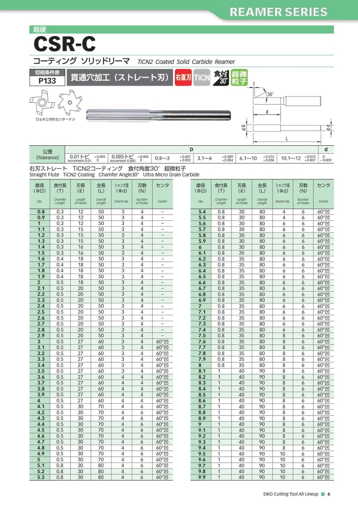 Eikosha CSR-C là dòng dao doa carbide nguyên khối lưỡi thẳng (Straight Flute Reamer), chuyên dùng cho:
