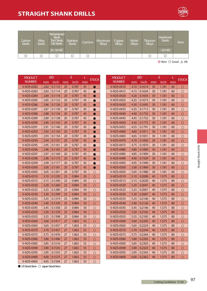 V-ADS – ATOM Nhật Bản là dòng mũi khoan hợp kim nguyên khối (solid carbide) không phủ, thiết kế góc đỉnh 118° kết hợp hình dạng rãnh V (V-flute), chuyên dùng cho gia công nhôm, đồng và vật liệu kim loại màu.